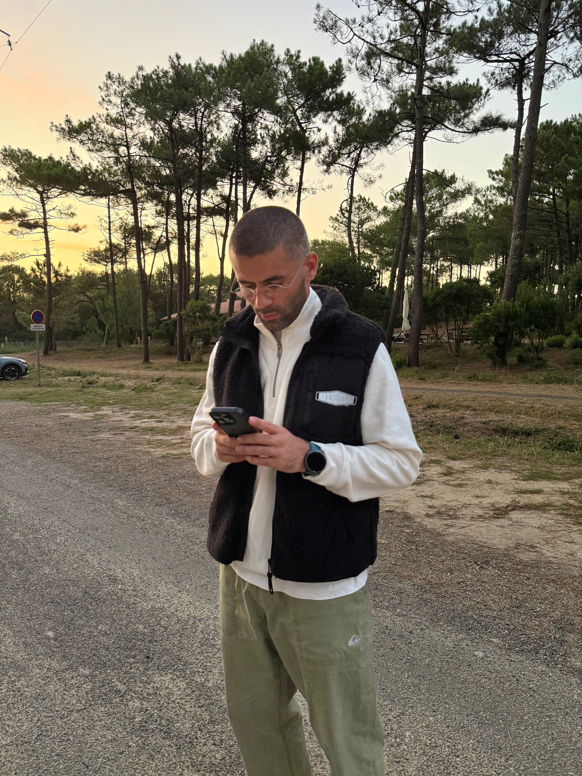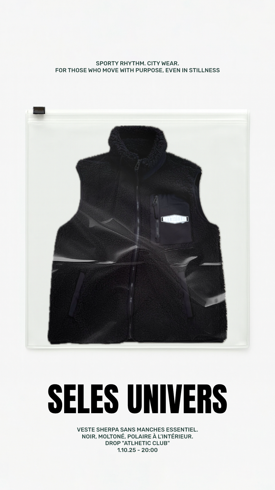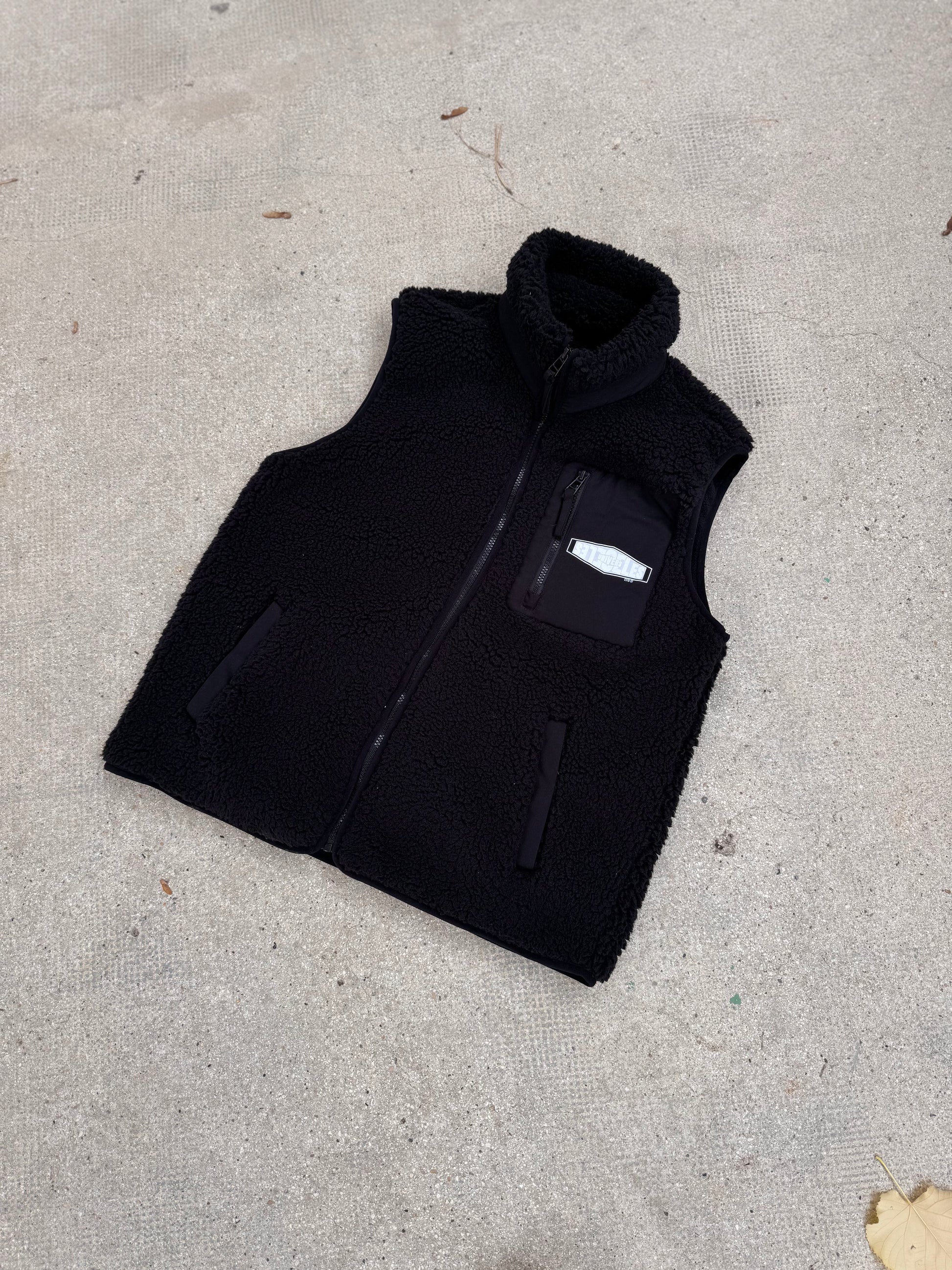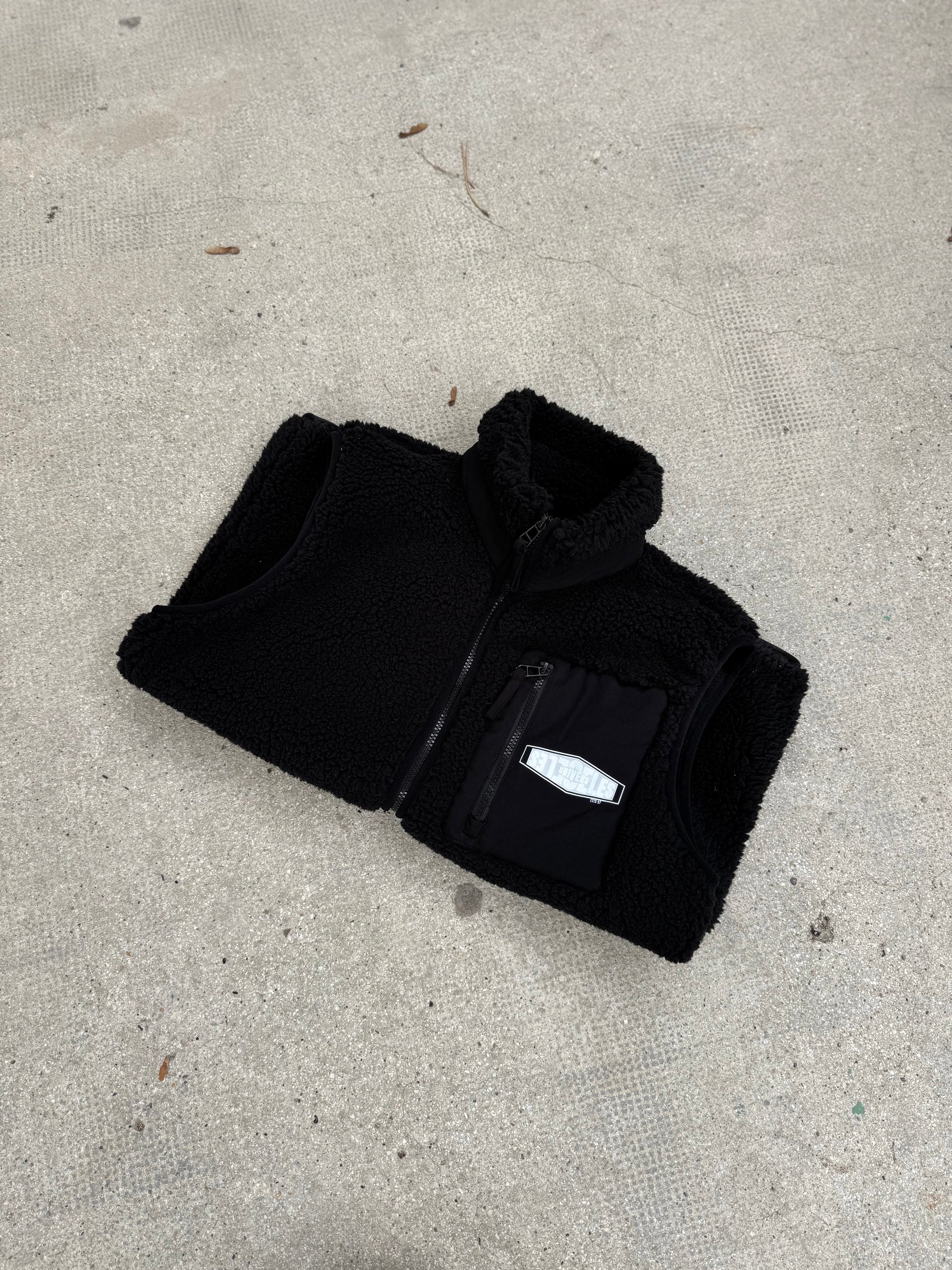 Veste sherpa sans manches noir. Tissu chaud, léger et doux.